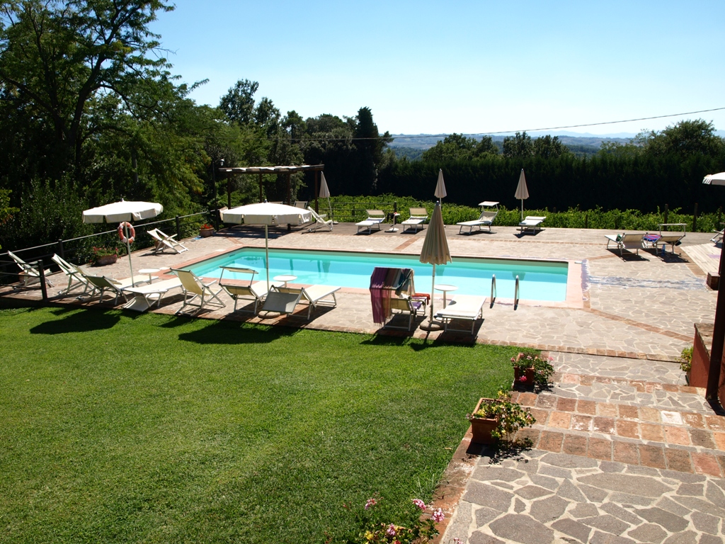 Po pierwsze rodzice mają do dyspozycji ogromny gaj oliwny, winnicę i ogród, więc mogą pójść na spacer. Mogą odpocząć, relaksować się, korzystać z uroków toskańskich krajobrazów. Jest również basen i leżaki. Można pływać, opalać się – po prostu leniuchować.