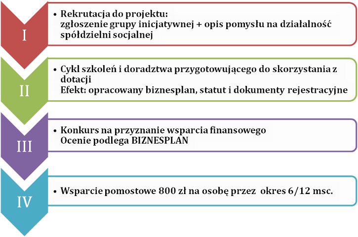 a) minimum 5 osób, z czego połowa powinna posiadać zaświadczenie o pozostawaniu bez pracy lub orzeczenie o stopniu niepełnosprawności, lub spełniać inne, opisane szczegółowo na np. stronie www.es.malopolska.pl, wytyczne umożliwiające zarejestrowanie spółdzielni socjalnej i pozyskanie wsparcia finansowego;